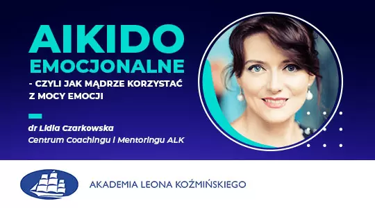 Już w najbliższy czwartek Akademia Leona Koźmińskiego zaprasza na wykład otwarty "AIKIDO EMOCJONALNE - CZYLI JAK MĄDRZE KORZYSTAĆ Z MOCY EMOCJI" . Wykład skierowany jest do osób zainteresowanych tematem inteligencji emocjonalnej a więc m.in. nauczycieli, pedagogów oraz kadry zarządzającej placówkami edukacyjnymi.Wykład, który poprowadzi dr Lidia Czarkowska z Centrum Coachingu i Mentoringu ALK, będzie omawiał zagadnienia związane z efektywnym i mądrym zarządzaniem emocjami. Pozwoli zapoznać się z 5 aspektami inteligencji emocjonalnej, metodami zarządzania sobą w silnych emocjach oraz sposobami wykorzystania mocy emocji do motywowania się i konstruktywnego działania. Spotkanie zostanie zrealizowane za pośrednictwem platformy ZOOM.